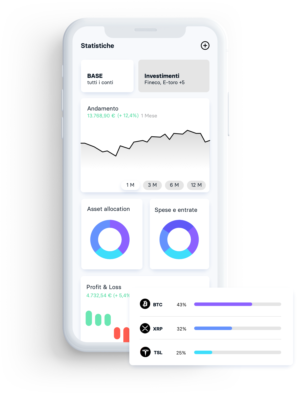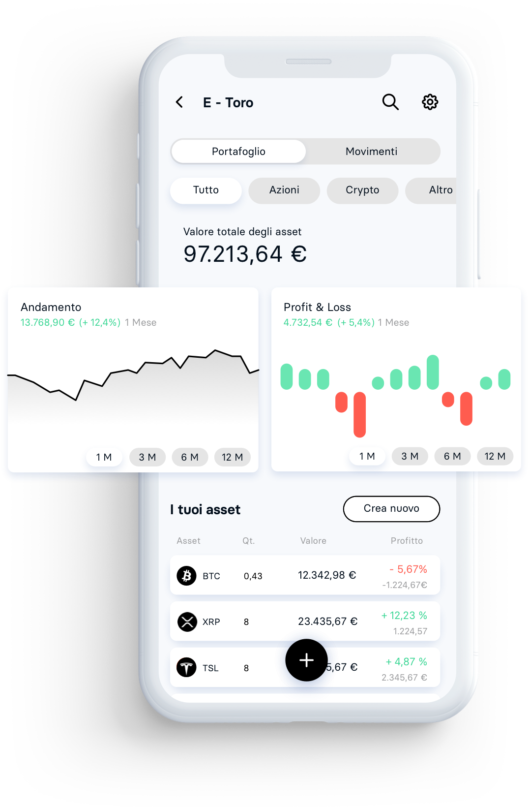 Trade e investimenti in un unico posto per avere sempre tutto sotto controllo. Visualizza andamento, profit & loss dei tuoi asset stock e crypto grazie ai conti investimento e trading.